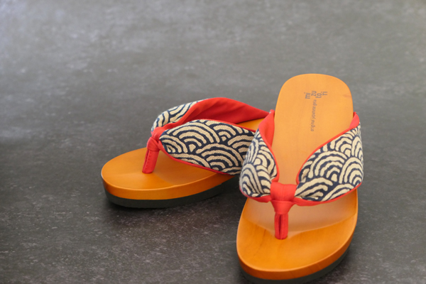 お部屋でご利用いただいている下駄は静岡の地場産業。昭和12年創業の水鳥工業が現代にマッチするような下駄をデザインしたもの。日本古来よりエコな履物として生活の中で溶け込んでいた下駄ですが、mizutoriの下駄は履き心地の良さが自慢。木はマホガニーまたはサペリを使っており、足裏にフィットするように滑らかに削った木地とクッション材入りの鼻緒が特徴です。